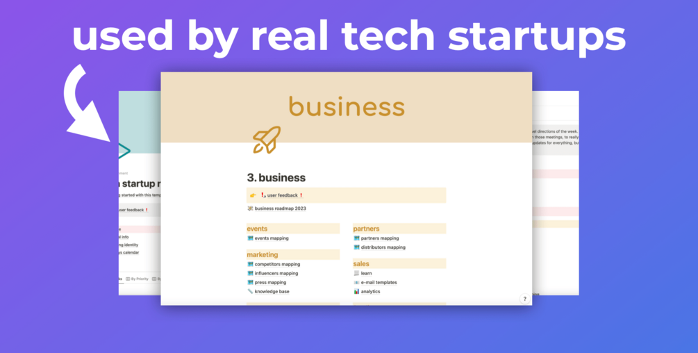 You'll get a full Notion template to run a tech startup from scratch